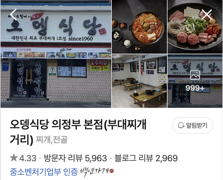 제가 가본 의정부 부대찌개 한 곳도 아래와 같이 소개해드릴게요. (의정부에서 가장 유명)